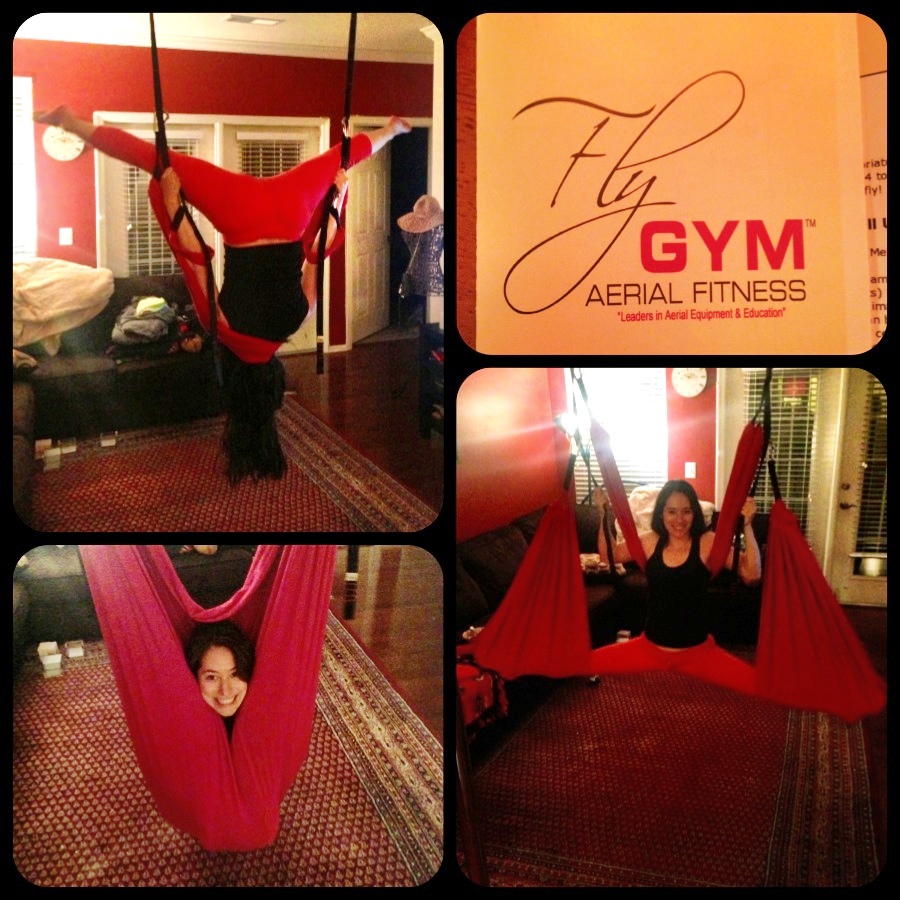 Besides my pole, I also have a Fly Gym, which is an aerial hammock that is rigged to the ceiling.
