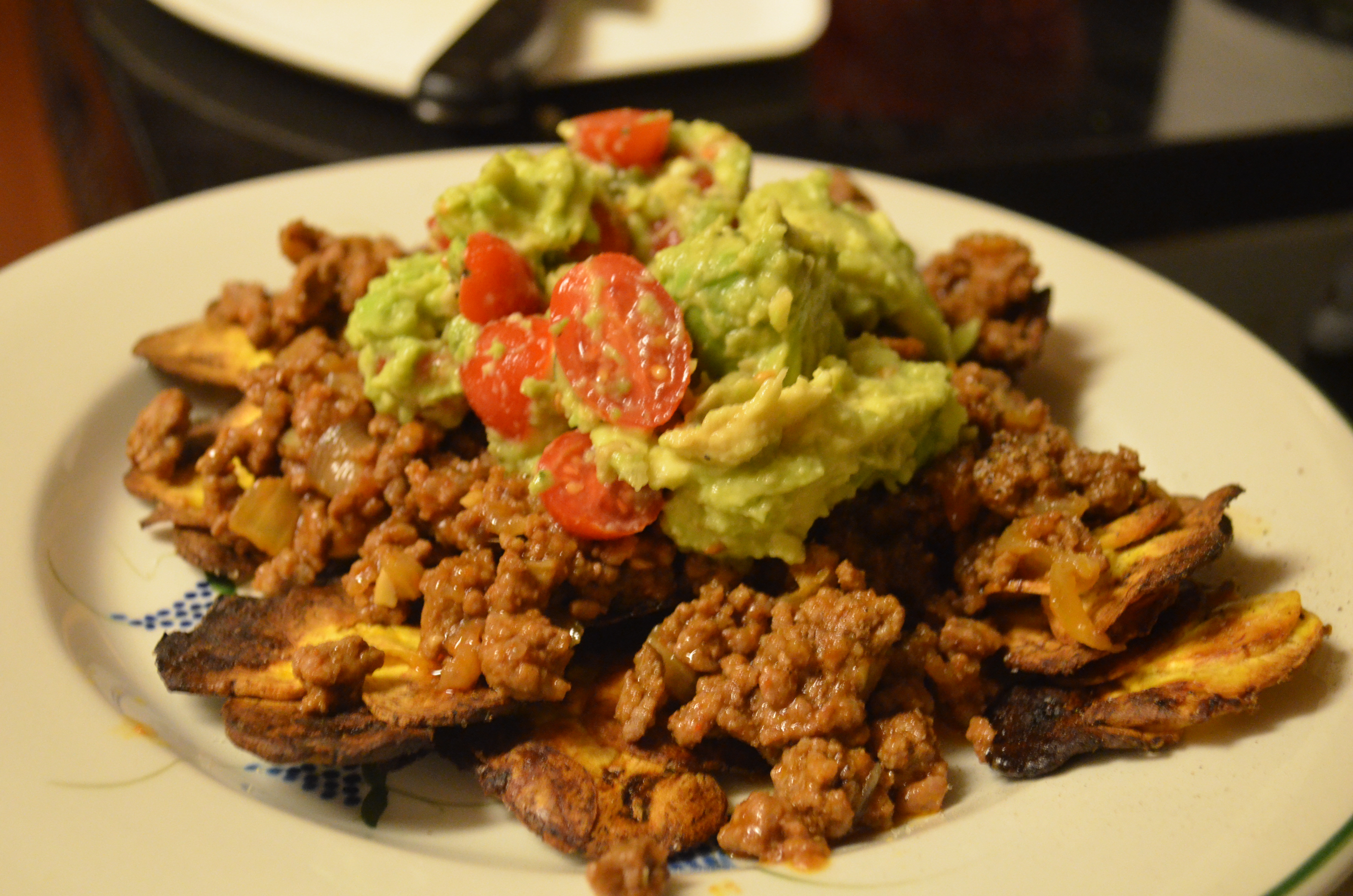 I think my favorite recipe so far has been the plantain nachos. The plantain chips came out crispy (they taste even better than conventional tortilla chips!) and the beef nacho meat was super flavorful. The plantain chips are a little cumbersome to make since you need to use a mandolin slicer to make them super thin (so they come out crispy), but in the end they are definitely worth it. I ended up topping the nachos with my homemade guacamole, chopped tomatoes and a squeeze of fresh lime juice. SO DELICIOUS!